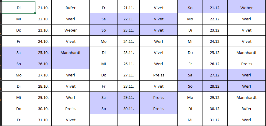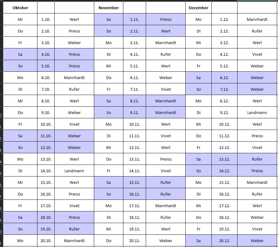 Den Notdienst, Sonntag der 26.10. übernimmt vormittags Werl und nachmittags Frau Preiss.